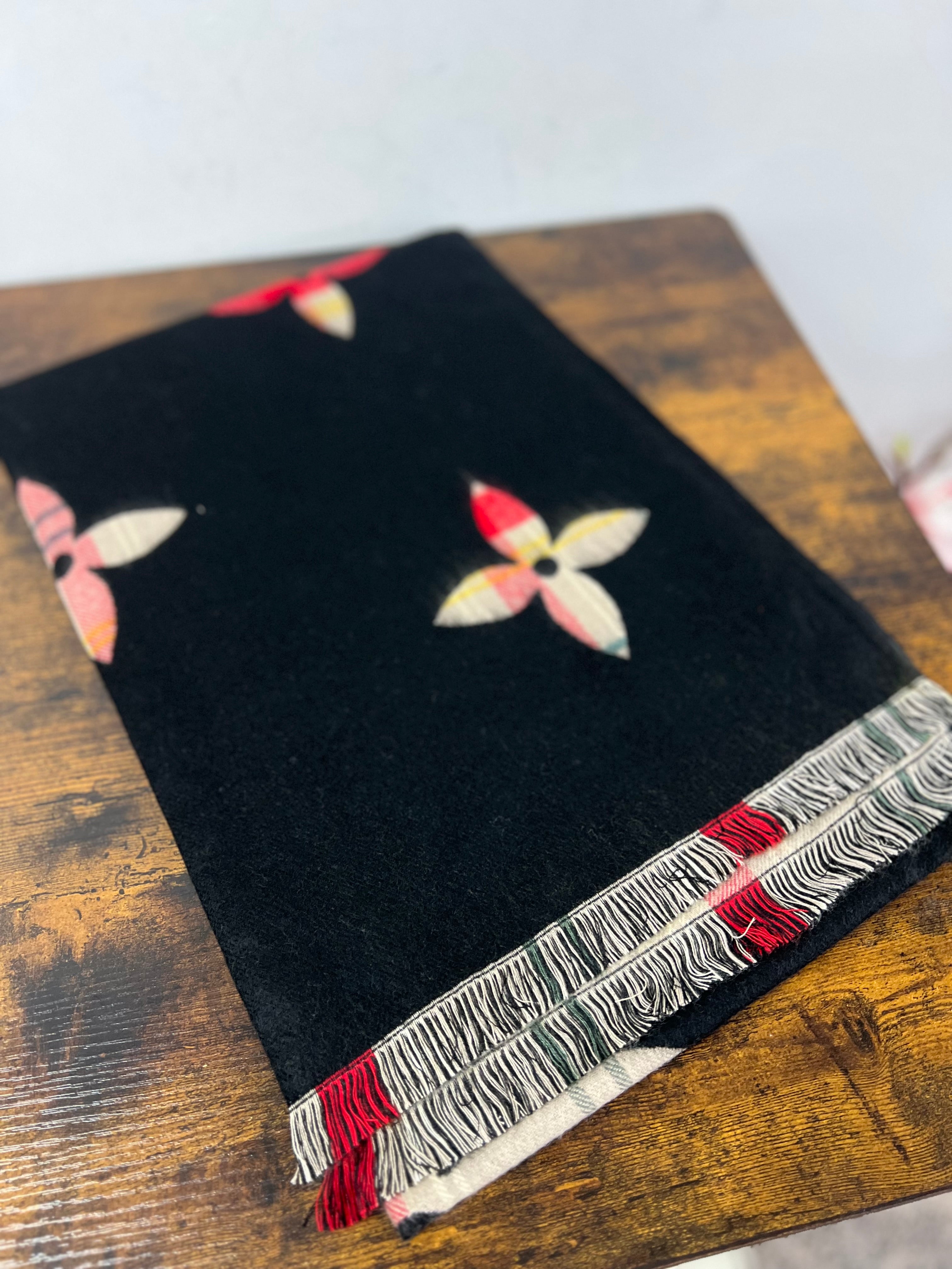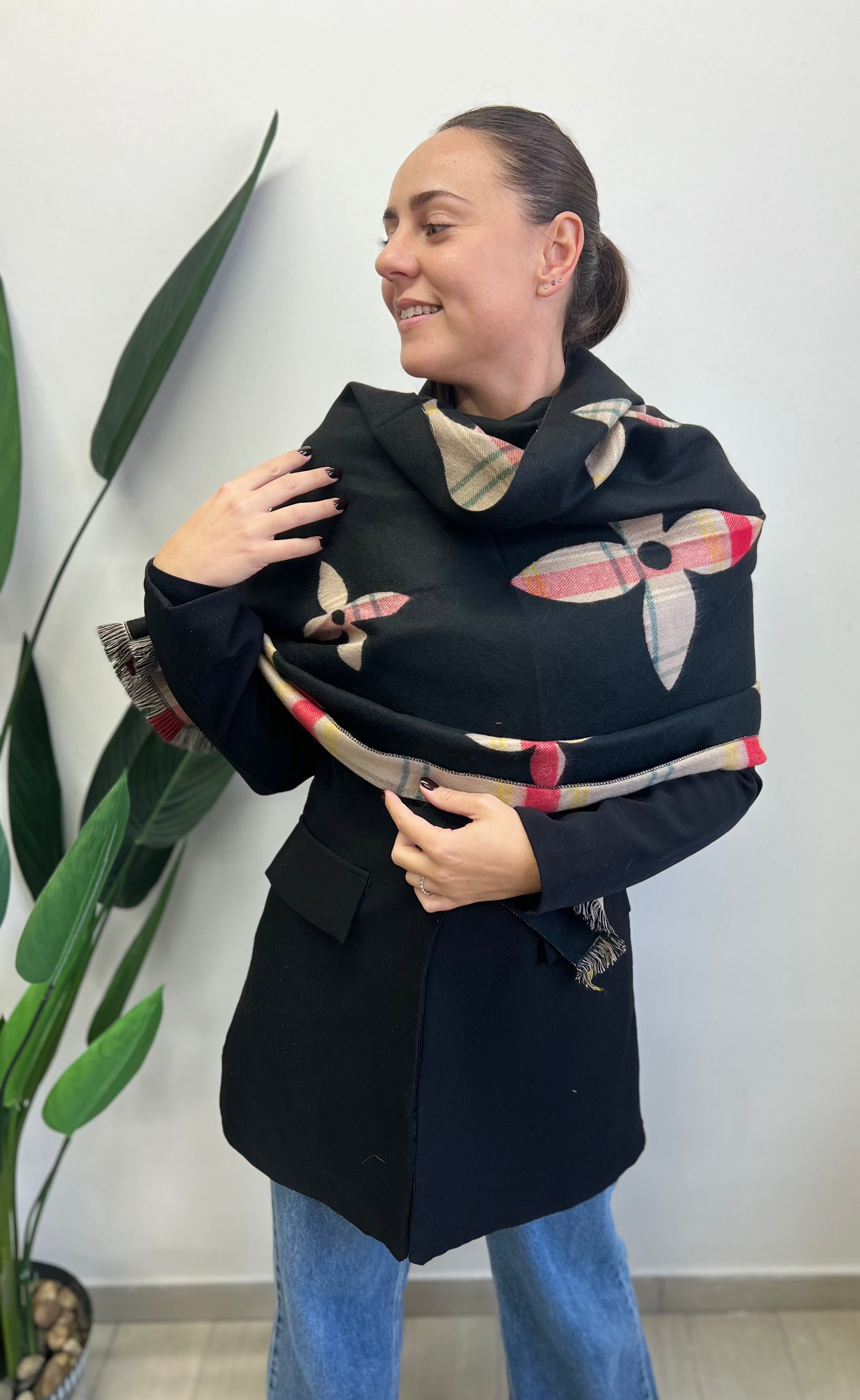 Sciarpona misto cachemire fiore nero