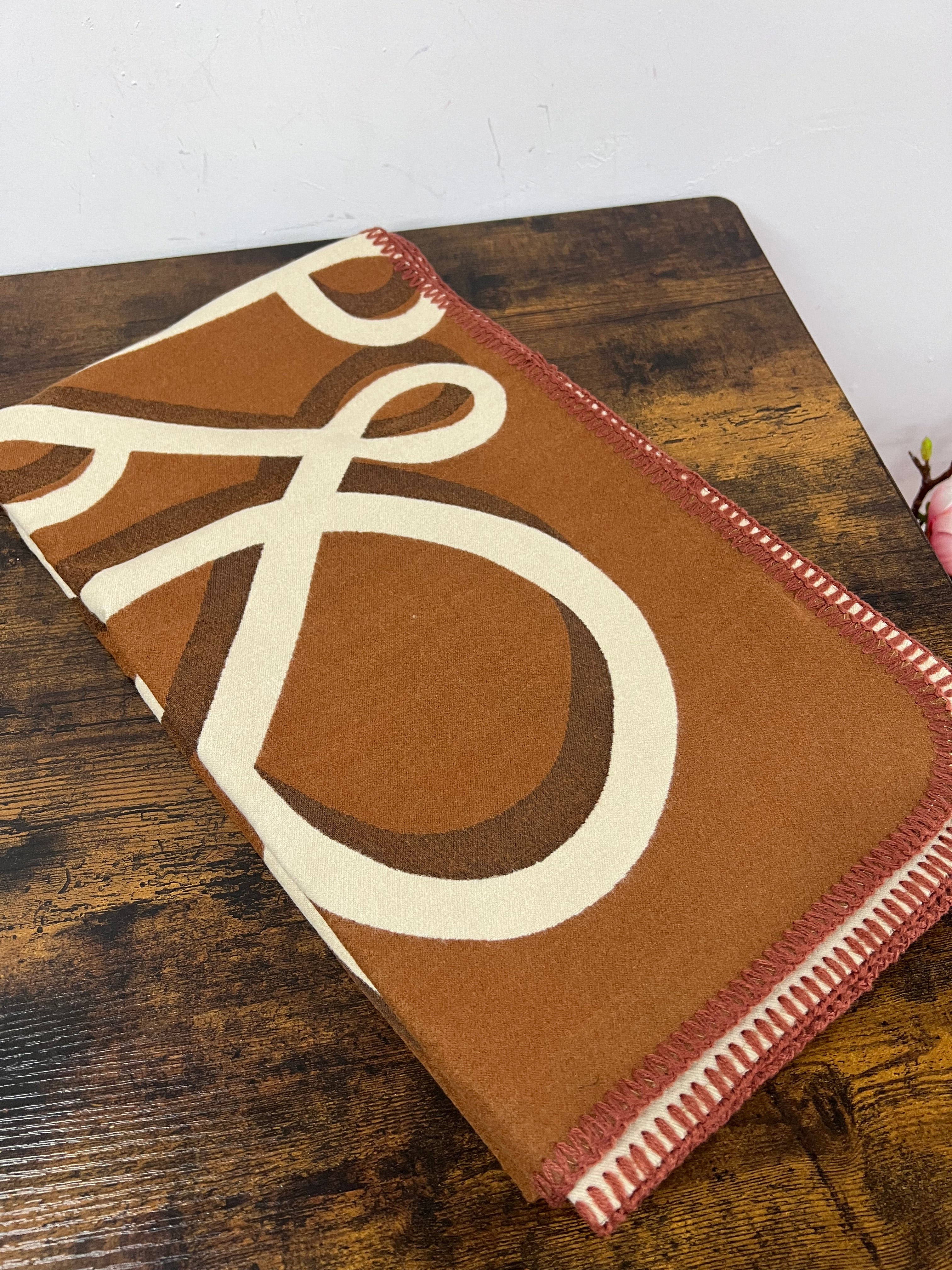 Sciarpona misto cachemire onde cuoio e panna
